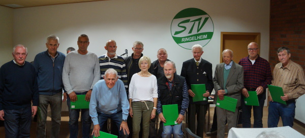 Geehrt wurde beim STV Ringelheim natürlich auch wieder. Durch die vielen, treuen Mitglieder im STV, konnten wieder zahlreiche Urkunden für langjährige Mitgliedschaft vergeben werden. Georg Pohl wurde in Abwesenheit für seine 80jährige Mitgliedschaft geehrt. Erwin Fromme wurde für seine 75jährige Mitgliedschaft geehrt. Er ließ es sich bei dieser Ehrung nicht nehmen persönlich dem STV in einer Rede zu danken. Er zeigte stolz seinen Mitgliedsausweis mit der Nummer 55 und gab einige Anekdoten zum Besten. Als großer Unterstützer des Vereins ließ er es sich zum Schluss nicht nehmen, den Verein mit einer großzügigen Spende für den Bau der neuen Tennisanlagen zu unterstützen. Hierfür bedankt sich der Verein herzlich.