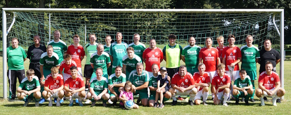 Das große Highlight war sicherlich das Fußballspiel. Das Eröffnungsspiel 1949 fand gegen den WSV Wolfenbüttel statt und es war dem STV gelungen den direkten Nachfolgeverein den MTV Wolfenbüffel ins Parkstadion zu lotsen. Der STV spielte mit einer Traditionsmannschaft aus ehemaligen Spielern meist im gesetzteren Alter, während der MTV Wolfenbüttel mit einer Reihe junger Nachwuchsspieler und Perspektivspielern kam. Der STV profitierte davon, dass sie gleich eine ganze Reihe Auswechselspieler hatte und konnten über Strecken das Tempo mithalten. Etwas überraschend ging der STV in Führung. Der ehemalige STV Stürmer Hans-Herman Sonnemann schloss einen Steilpass mustergültig ab. Es entwickelte sich ein lebhaftes, faires Spiel. Die spielerischen Highlights setzte meist der MTV Wolfenbüttel, doch auch der STV Ringelheim konnte einige gute Aktionen verbuchen. In diesen Fällen merkte man den großen Heimvorteil mit großem Applaus bei geglückten Balleroberungen. Angetrieben von Guido Stadelbeck, welcher die Mannschaft bei jeder Gelegenheit anstachelte und motivierte als wäre es ein Finale, spielte der STV einen sehr guten Fußball. Eine Mannschaft die nach nur sechsmal Training extra für dieses Spiel zusammengesucht wurde. Mit der knappen 1:0 Führung ging es in die Pause und in der zweiten Halbzeit konnte man den Konditionsvorteil vom MTV Wolfenbüttel bemerken. Mit tollen, ansehnlichen Ballstafetten kombinierten sie im Mittelfeld nach Belieben und ließen den STV meist in der Zuschauerrolle. Der STV verlagerte sein Spiel auf die Verteidigung und setzte nur noch auf Konter und den Lucky Punch. Während der MTV den Druck immer weiter erhöhte und zu zahlreichen Abschlüssen kam. STV Keeper Leon Hanyk wuchs hier über sich hinaus und vereitelte mehrfach den Ausgleich. Der „Man of the Match“ hielt die immer stärker werdende Gäste vom Ausgleich ab. Schon tief in der zweiten Hälfte, als die Kräfte des STVs immer weiter schwanden, konnte sich der MTV im Strafraum festsetzen. Nach mehreren abgeblockten Schüssen war dann Luis Richter zur Stelle und überwand Leon Hanyk aus kurzer Distanz. Der völlig verdiente Ausgleich setzte dann auch den Schlusspunkt. In den letzten Minuten lief der Ball zwischen den Spielern hin und her, ohne wirklich in die Gefahrenzone zu gelangen. So blieb es beim besten Ergebnis in einem Freundschaftsspiel, einem Unentschieden.
