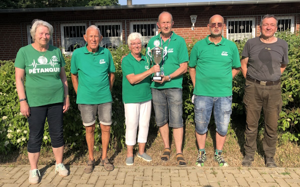 Am 9.6. haben wir unsere 11. Vereinsmeisterschaft ausgetragen. 10 Doubletten wurden im Vorfeld ausgelost. Die spannende Erwartung der Mitspieler - mit wem spiele ich denn dieses Mal - war in den Gesichtern zu lesen. Leider mussten spontan aufgrund plötzlicher, unerwarteter Umstände Änderungen vorgenommen werden, aber letztendlich hat alles geklappt. Bei bestem Sommerwetter gaben wir alles, um jeden Punkt wurde erbittert gekämpft. In den Pausen stärkten wir uns mit Kaltgetränken, Kaffee und Kuchen. Nach 6 Stunden standen die neuen Vereinsmeister fest: es sind Christa Maibohm und Friedhelm Schürholz.  In einem packenden Finale, bei dem wirklich Pünktchen hier, Pünktchen da, gegen Alfred Kaufmann und Dr. Peter Renneberg erspielt wurden, konnten sich die beiden letztendlich durchsetzen.